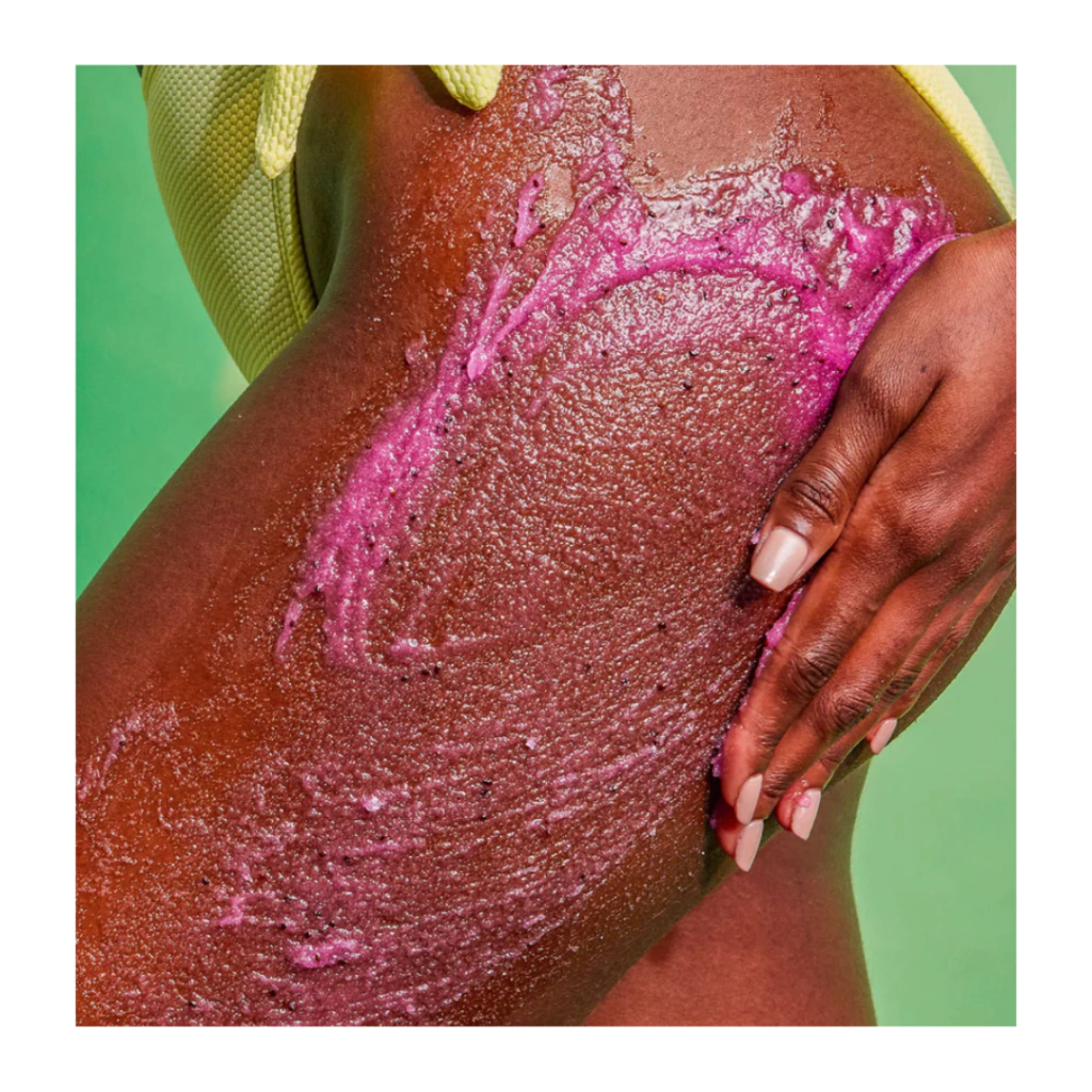 Feito com açúcar, manteiga de karité, extrato de fruta do dragão e óleo de pêra espinhosa para deixar a pele nutrida e com um cheiro incrível.