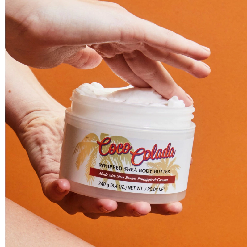 Coco Colada Whipped Body Butter é o tratamento perfeito para a pele após o banho ou como um refrescante para a pele. O aroma brilhante de verão de Coco Colada deixará sua pele macia, hidratada e com um cheiro incrível!