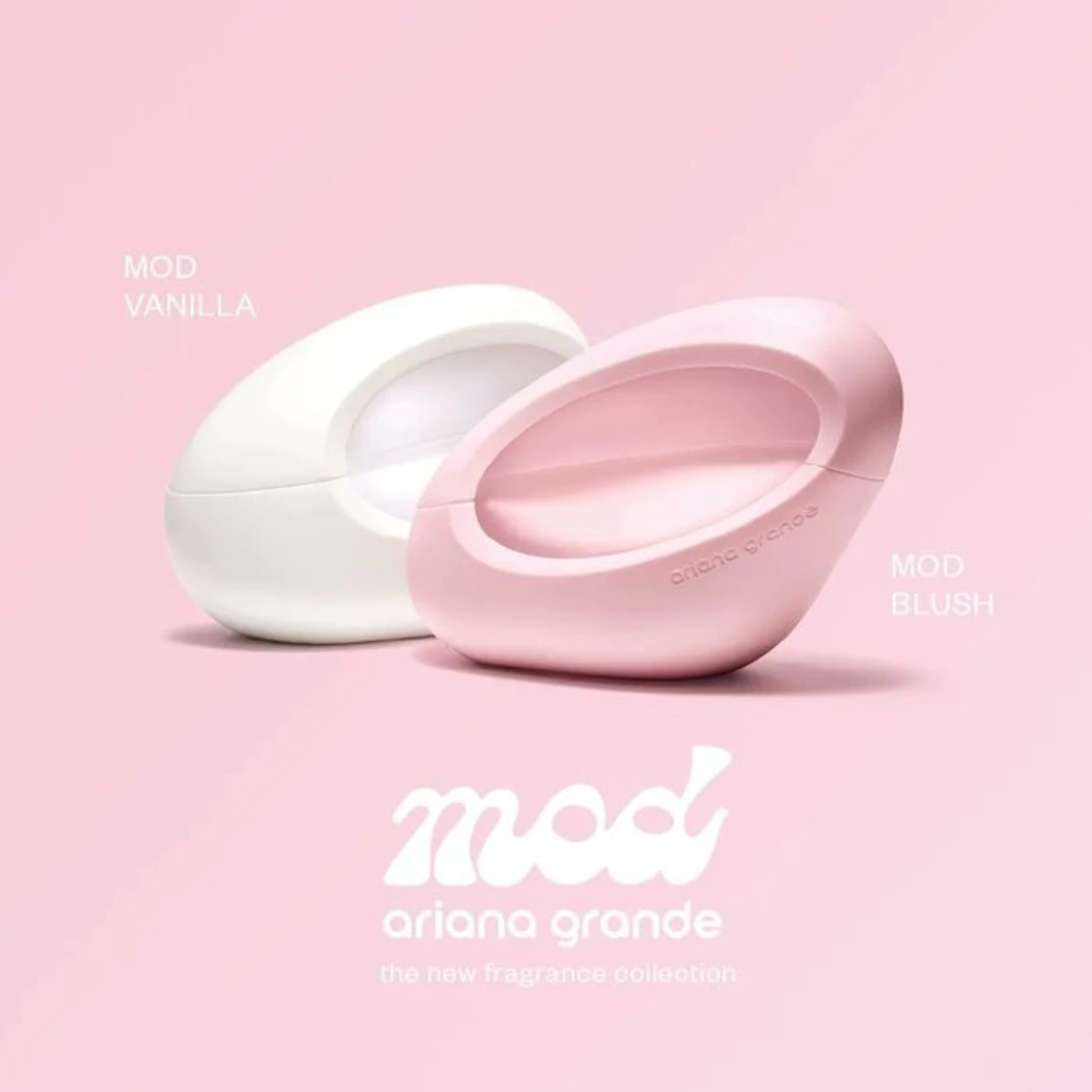 Ariana Grande MOD, a coleção de fragrâncias. MOD Blush Eau de Parfum abre com uma mistura de bergamota e maracujá para uma introdução atraente. Dewy Rose e Magnólia com um toque de pêra criam uma evolução de tirar o fôlego na pele. Ambrox e almíscar deixam uma impressão intimamente luxuosa.