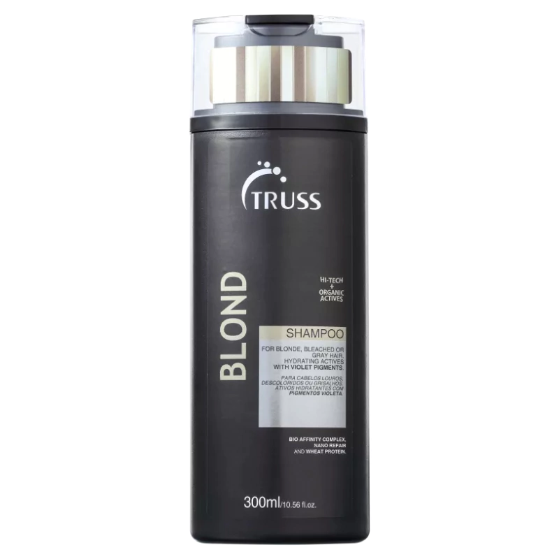 O Shampoo Truss Blond é formulado com tecnologias que recuperam a elasticidade dos fios, protegendo contra as agressões externas. Truss Blond possui pigmentos violetas que resgatam o brilho platinado e eliminam o aspecto amarelado de forma progressiva.