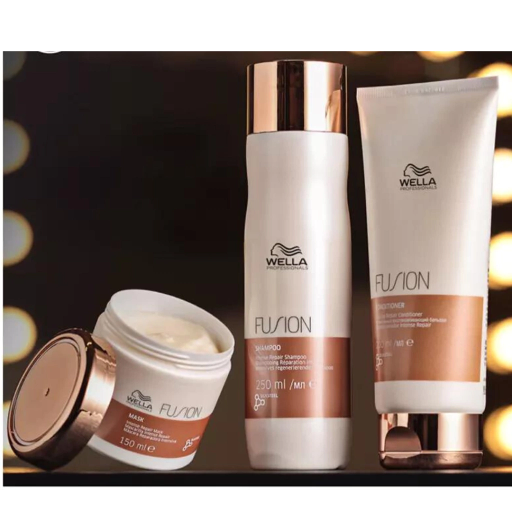 A fórmula conta com a tecnologia EDDS que remove impurezas metálicas por meio de ação antioxidante. Wella Fusion é uma linha projetada para reparar e proteger os cabelos contra quebras e danos. Além disso, sua fragrância combina nove aromas que remetem à sofisticação com seu toque de madeira florestal e notas de base quentes, como cedro e sândalo.