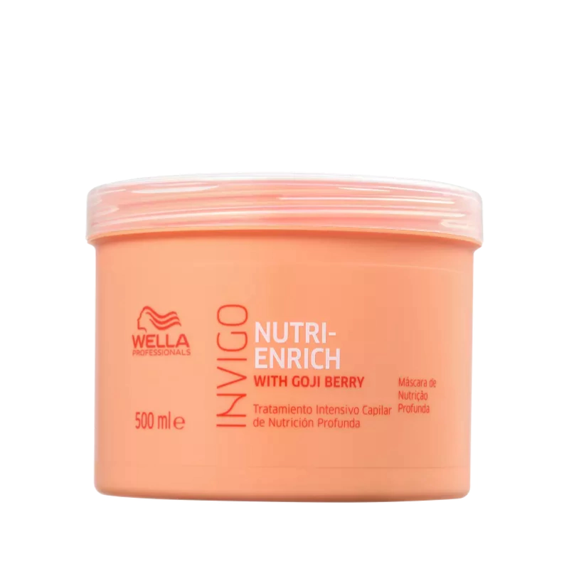 Máscara de nutrição para cabelos secos, ressecados ou com química. Wella Professionals Invigo Nutri-Enrich hidrata e nutre profundamente para restaurar a saúde dos fios e ainda garantir um toque sedoso e muito brilho.