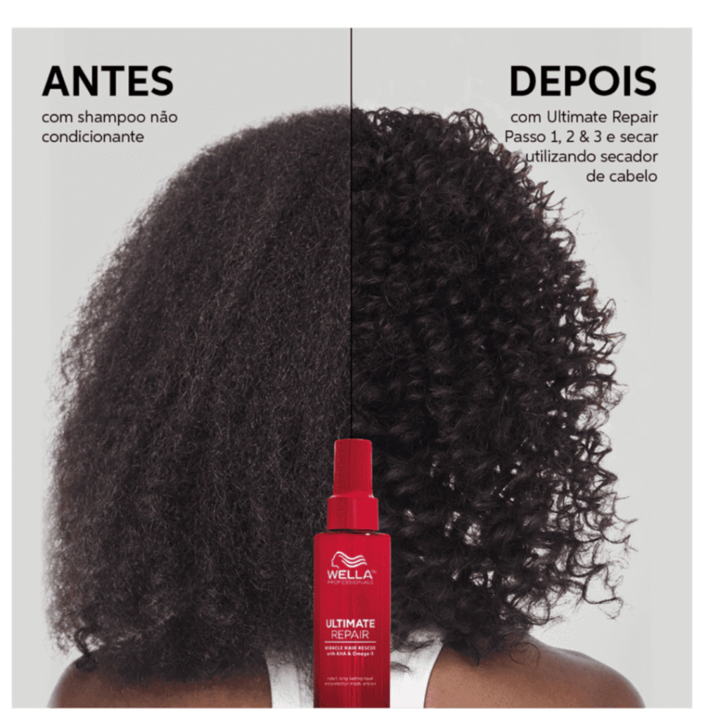 O Condicionador Wella Professionals Ultimate Repair Passo 2 tem uma fórmula que reconstrói as madeixas em 90 segundos, promovendo fios 12 vezes mais macios e com uma aparência saudável.
