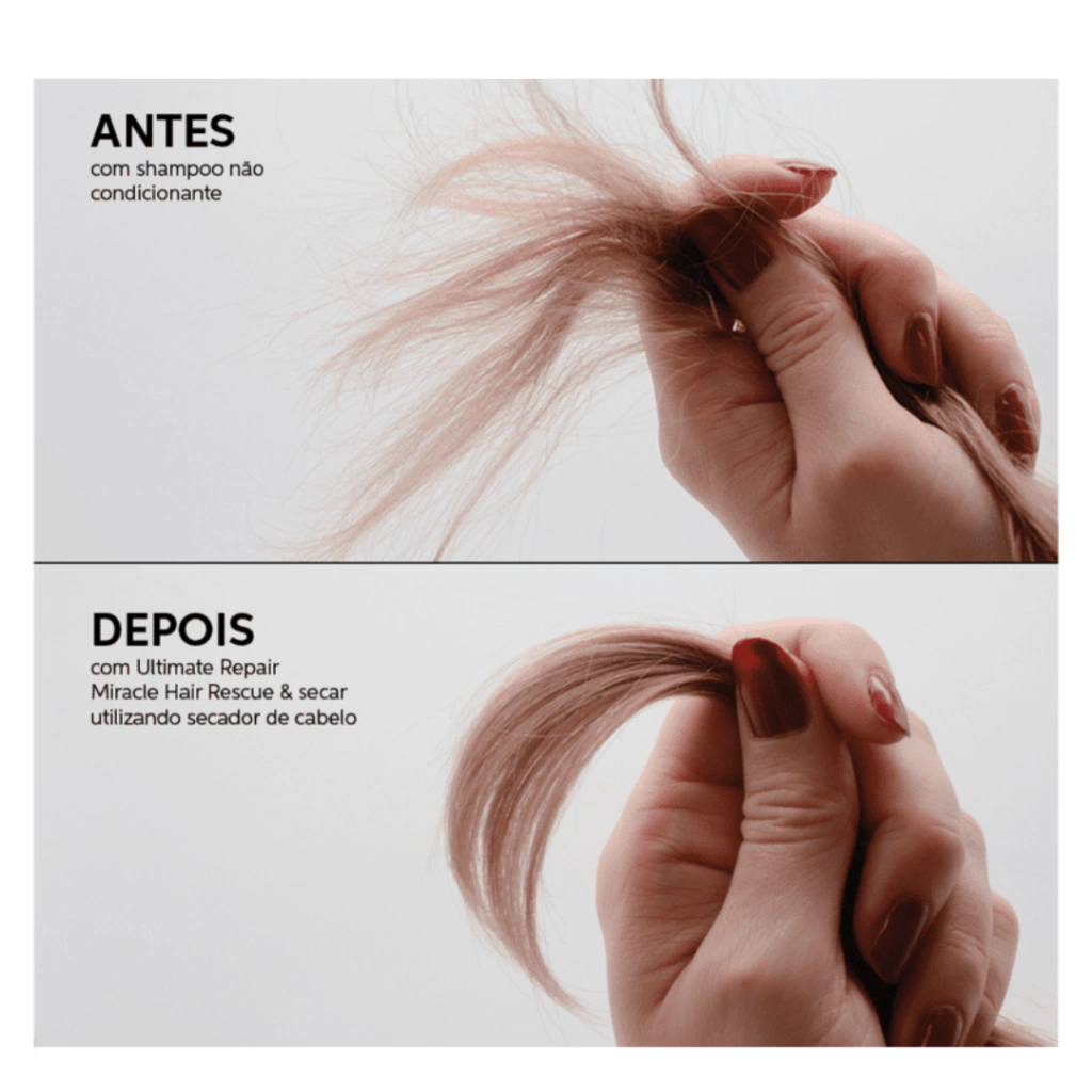 O Condicionador Wella Professionals Ultimate Repair Passo 2 tem uma fórmula que reconstrói as madeixas em 90 segundos, promovendo fios 12 vezes mais macios e com uma aparência saudável.